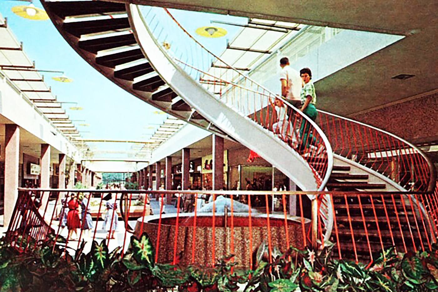 Gruen, die zichzelf de “Architect van het Volk” noemde, wilde commerciële en sociale activiteiten combineren in de stereotiepe, saaie voorstedelijke uitbreiding door “winkelsteden” te creëren, een concept dat hij in 1943 had geformuleerd als onderdeel van een nationale ontwerpwedstrijd van een stad in het jaar 194X. X voor het toen nog onbekende jaar waarin de Tweede Wereldoorlog zou eindigen!
